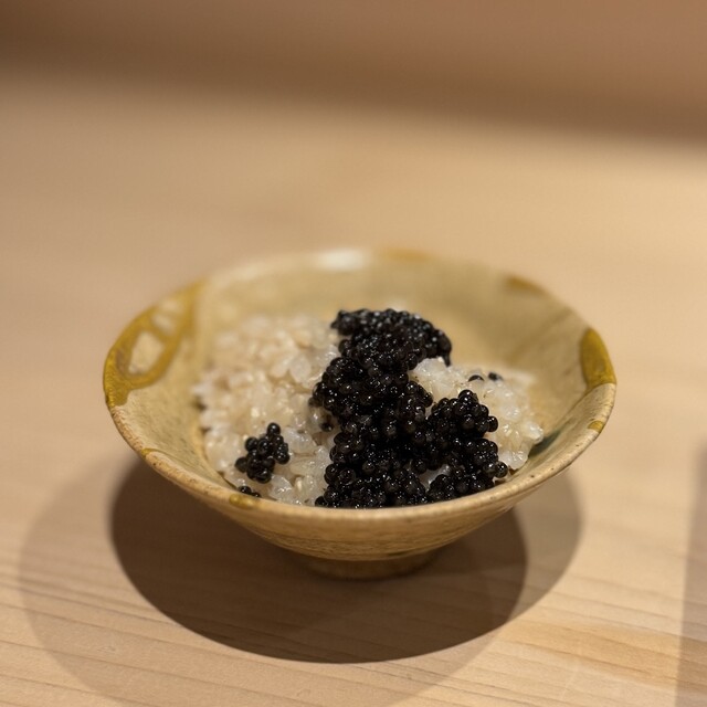 ご飯はシャリではなく玄米。少し硬めに炊かれており、キャビアと見事にマッチ。