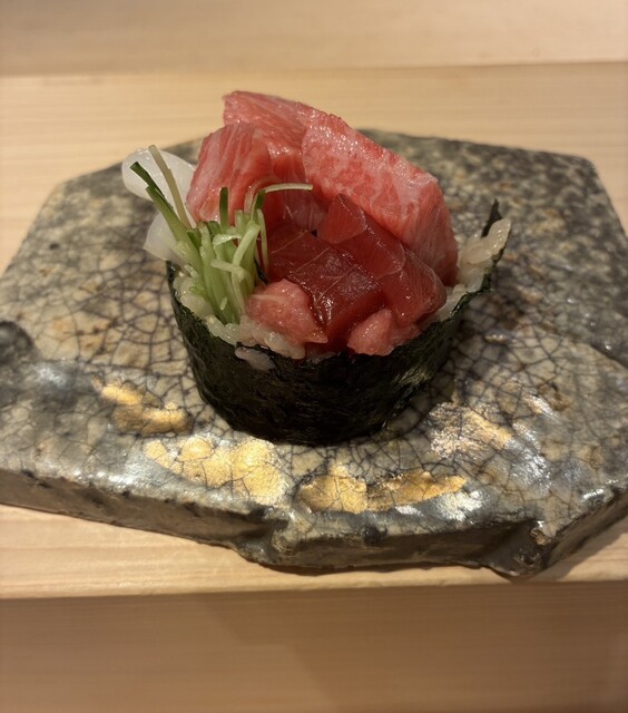 中でもシャリで使っているお米の玄米を宮崎のキャビアと合わせて頂くのは新鮮でした。エゾバフンウニを殻付きで頂けたり、また、最後の豪快な海鮮太巻きは圧巻でした。