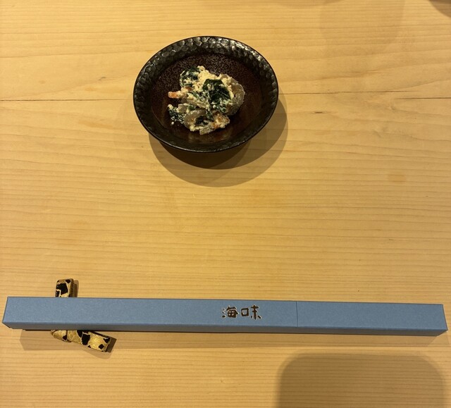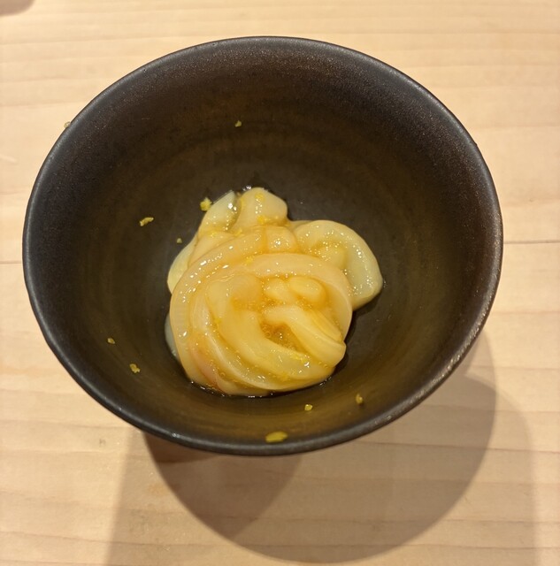 丁寧な仕事で素材も厳選しどれもとても美味しかったですが、淡々と進んでいく感じであまり驚きのようなものはなかったです。また、大将も説明はあるもののそれ以上には話さず黙々と進められていました。