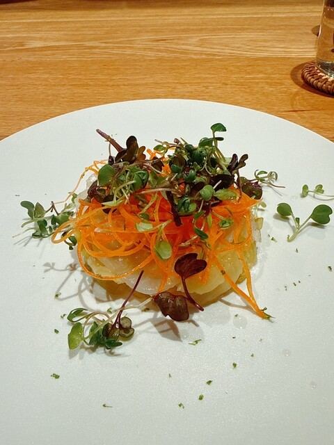1月のtens.さん、抜群の魚介とと繊細な組み合わせが素晴らしいイタリアンです。毎回感動させて頂きオペレーションも完璧で満足感は最高位です。今回もトラフグのカルパッチョ食感、合わせる人参やキャベツの甘みのバランスが素晴らしい。但馬牛のタルタル、味が濃いエビのフリットと来て、チーズ、セリ、毛蟹のハーモニーが抜群の茶碗蒸し。パスタやリゾットも言う事なしで、最高のイタリアンです。