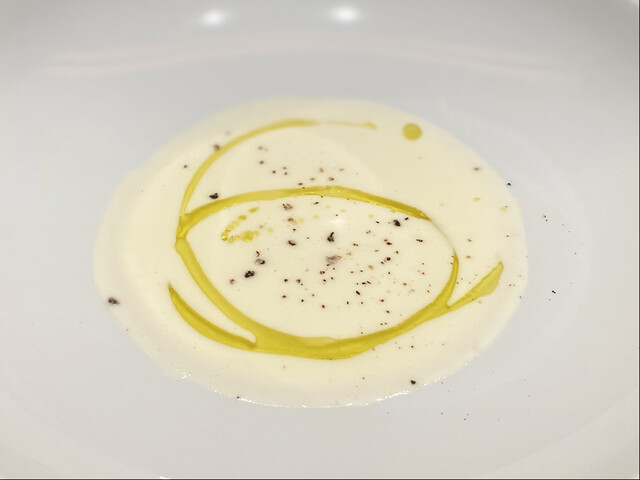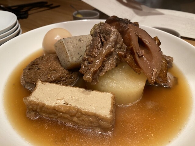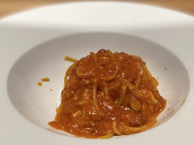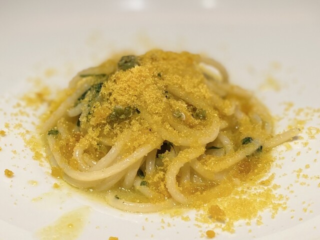 コースはなくてアラカルトですが、前菜メインパスタなどバランスよく頼めばコースみたいに出してもらえると思います。この日はパスタたくさん食べに行ったので前菜は名物のまぐろのブルスケッタと、カリフラワーのポタージュ、あとはパスタをたくさんいただきました。あ、おでんもいただいた。イタリアンにおでんあるのすごい。