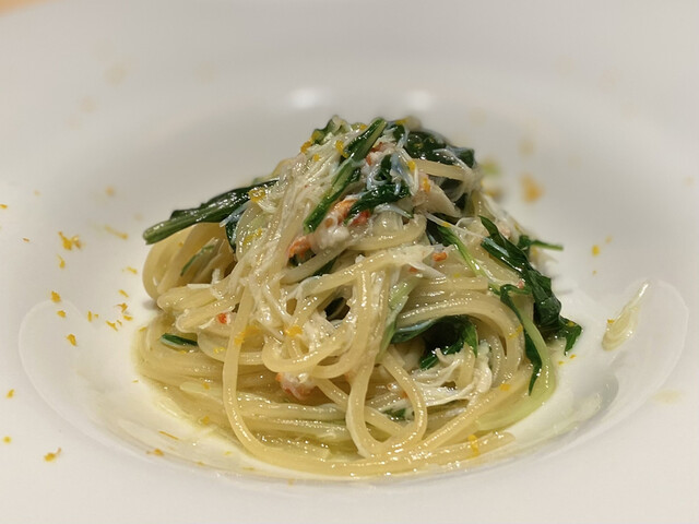 北海道産毛蟹と水菜 軽いバターソース 手打ちシャラティエッリ