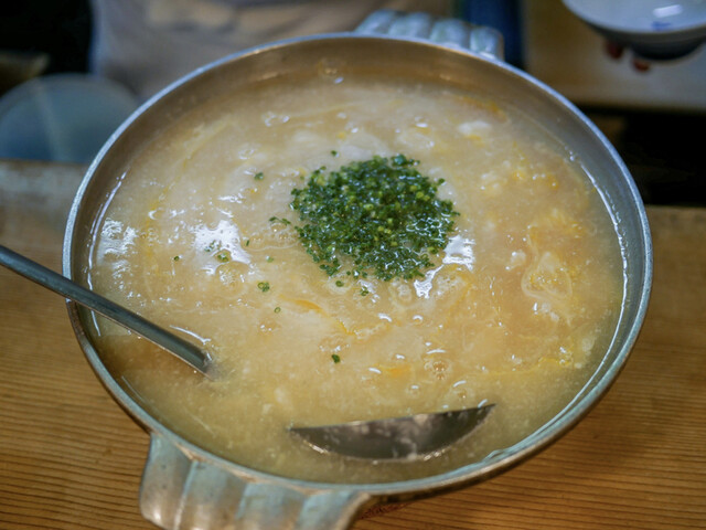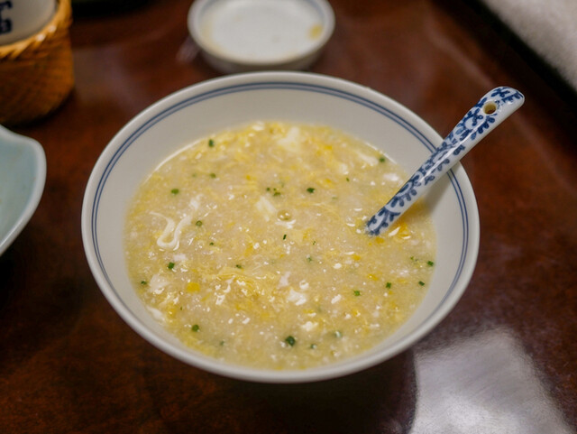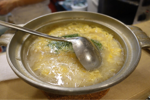 この「唐揚」と雑炊を食べるためだけにここにきていると言っても言い過ぎではないかもしれません。もちろん、雑炊も普通の量の倍くらい作ってもらいました。