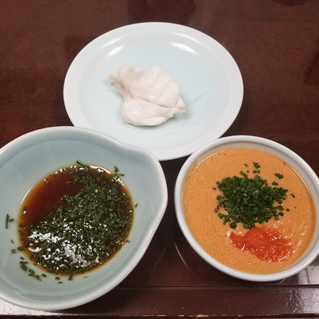 それを贅沢にすくって、薬味とともにポン酢だれでさっぱりと、鮟肝のつけだれで濃厚な味わいを楽しませていただきました∋(゜Θ゜)∈