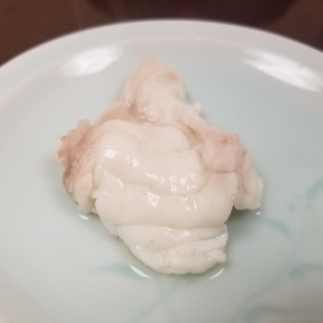 まずはシンプルな昆布出汁でしゃぶしゃぶ風にふぐの2部位を味わいましたが、これが美味いのなんのって(o゚з゚o)ノ