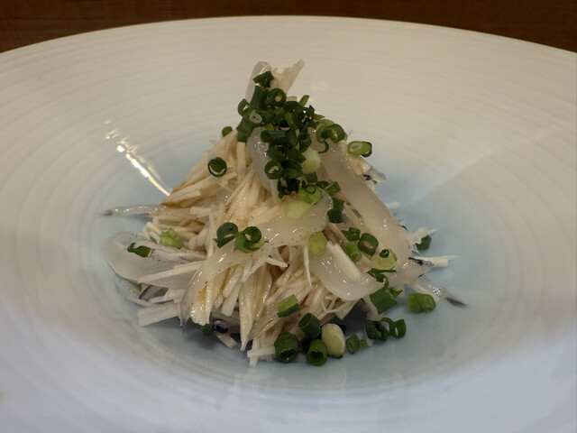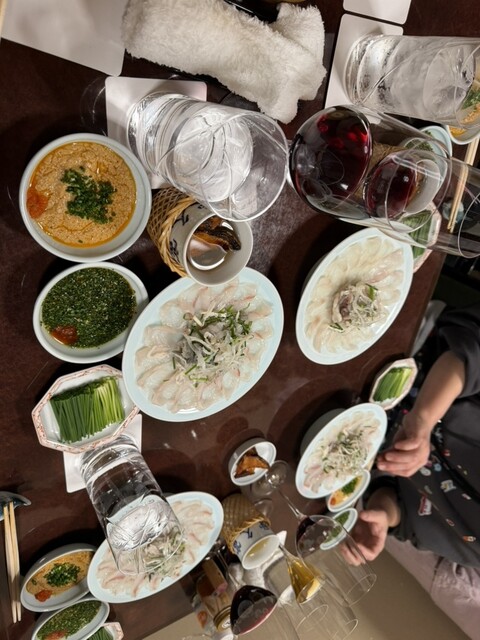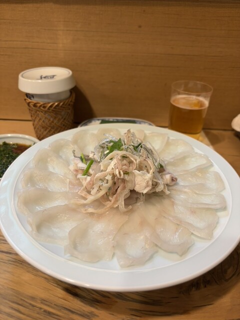 見事なふぐ刺しに感動しました!薄造りされた身は透き通っていて、職人さんの丁寧な仕事ぶりが伝わってきます。口に入れると、上品な甘みと旨みが広がり、コリコリとした食感がたまりません。薬味のネギやもみじおろ...