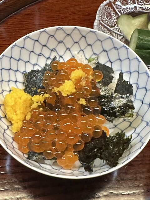 最後にはシラス、カラスミ、イクラのおかずをいただき、ご飯を三杯お代わりして完食。最高のひとときを過ごしました!