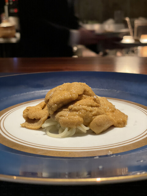 ・稲取 並木屋より 神経〆障泥鳥賊とオシェトラキャビアの冷製フェデリーニ
