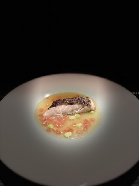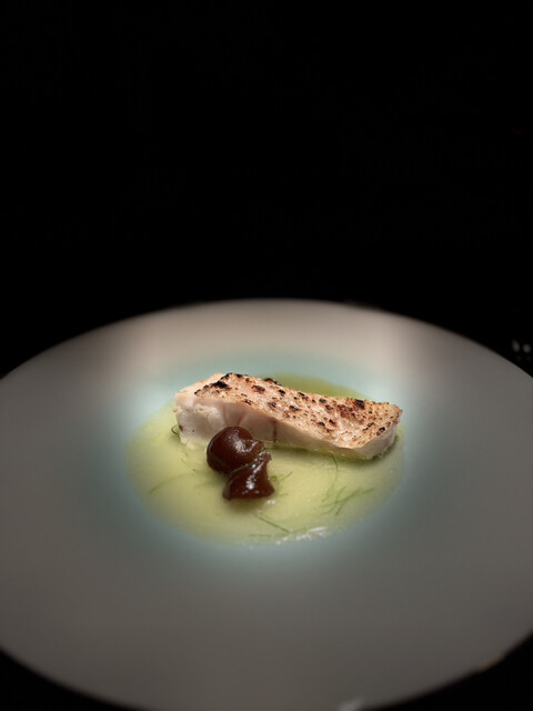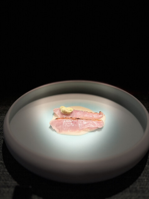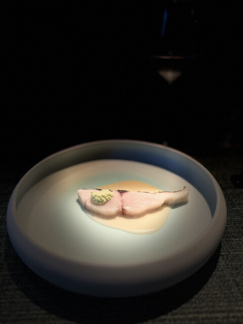 6. **神経〆白甘鯛**(愛媛・藤本さんより)とヤマドリの本日の仕立て。ふっくらとした身が絶品です。