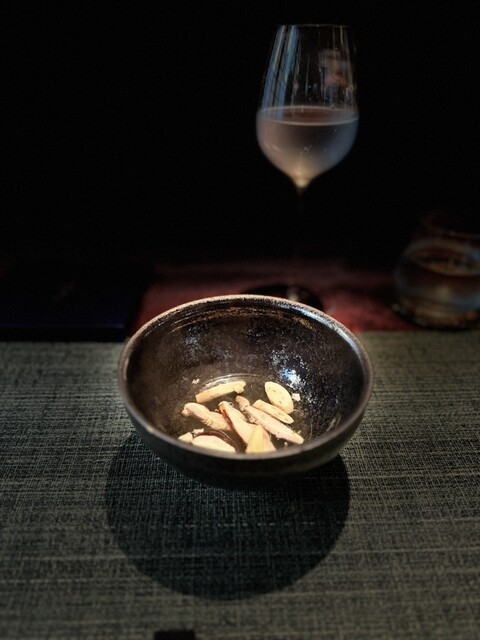 1. **神経〆強のコンリメ**(愛媛・藤本さんより)と北海道の松茸の組み合わせで始まる一品。
