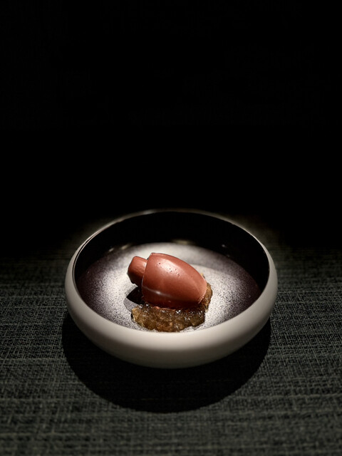 藁の香ばしさに、米と甘酒ヴィネグレットが穏やかな余韻を重ねる。