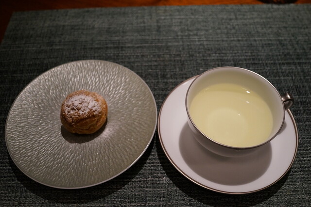 但馬玄の赤ワイン煮。苺スープ。黒トリュフアイス。シュークリーム&飲物。