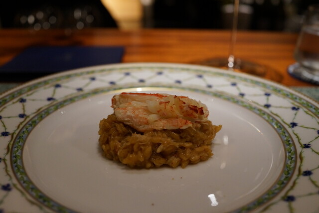 旨味強めのレアなシマアジ。赤座海老&超濃厚ビスク。