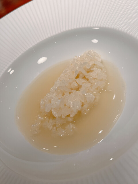 ●地頭鶏のコンソメ:蛤スープ、リゾット、葛粉