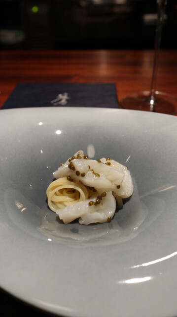 ▷イカと冷製パスタの組み合わせは初めてでした。イカのつるりとした食感にキャビアのプチプチ感が面白い。キャビアたっくさんで贅沢すぎ。上品な味わいでした。