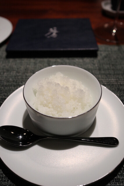 ▷お口直し。ほのかに文旦の味がするかき氷って感じ。さっぱりしました。
