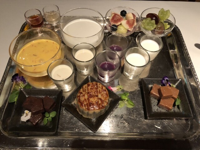 私は、月餅•杏仁豆腐•マンゴースープ•チョコレート菓子•フレッシュいちぢくをチョイス!