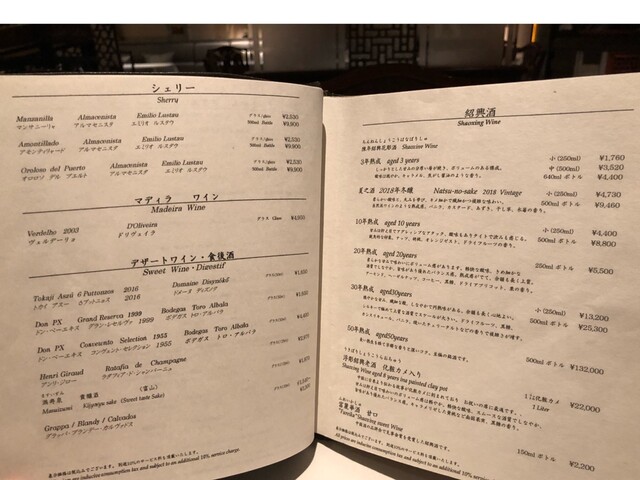 食後に温かいジャスミンティーがポットで提供され、私は紹興酒を250ml•友人は冷た様々なお茶を4杯くらいいただき、2名で105000円くらいでした。