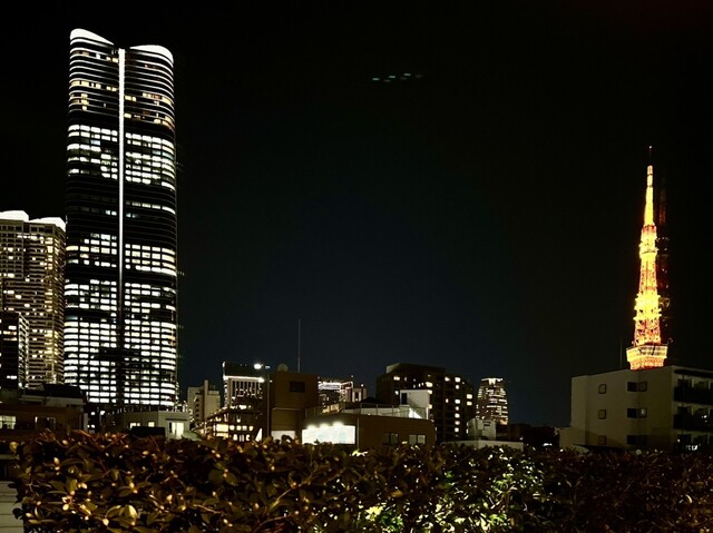 合間の休憩では夜風に吹かれ、目の前にそびえる東京タワーを眺めながら一服。