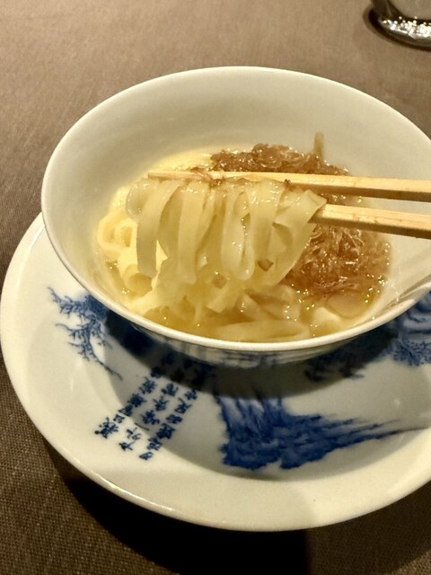 雲白肉、薬膳スープのツートップは感動級の美味しさ、いや、ほぼ全ての皿が感動級の美味しさなのですが、この日これ以外で特に美味しかったのは干し鮑、季節の鱧、キングオクラの一品、そして〆の麺などでしょうか。