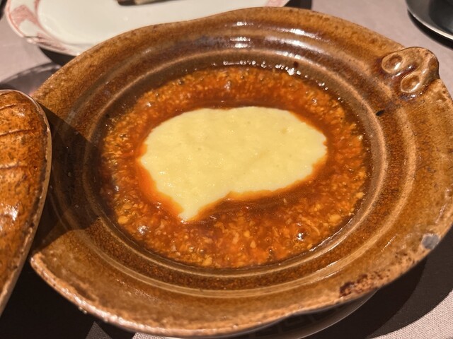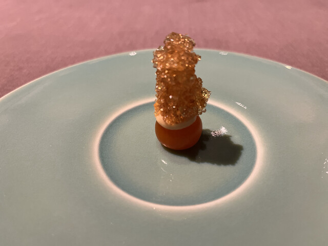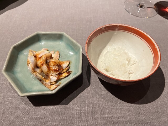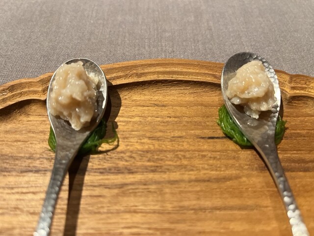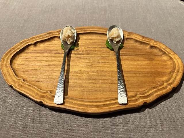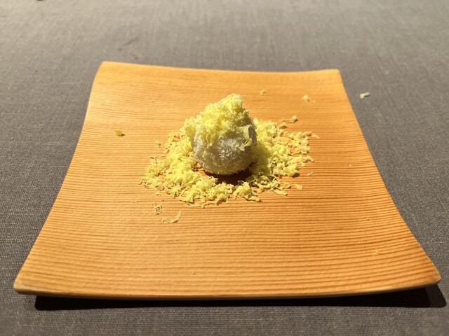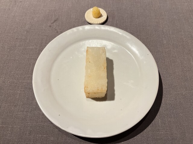 →またまた口直し的な大根餅なのですが…こういう何気ないお料理の美味しさこそが川田シェフの真骨頂なんでしょうね!こんなに滑らかでありながらカリッと感を楽しめる大根餅はお初!そして最後は柚子大根おろしをトッピングして楽しむ事で完全な口直しを演出してくださいました(^^)