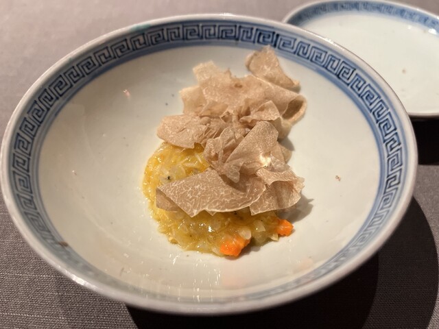 ◉上海蟹餡掛けお粥 アルバ 白トリュフ削り掛け