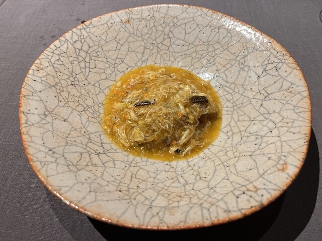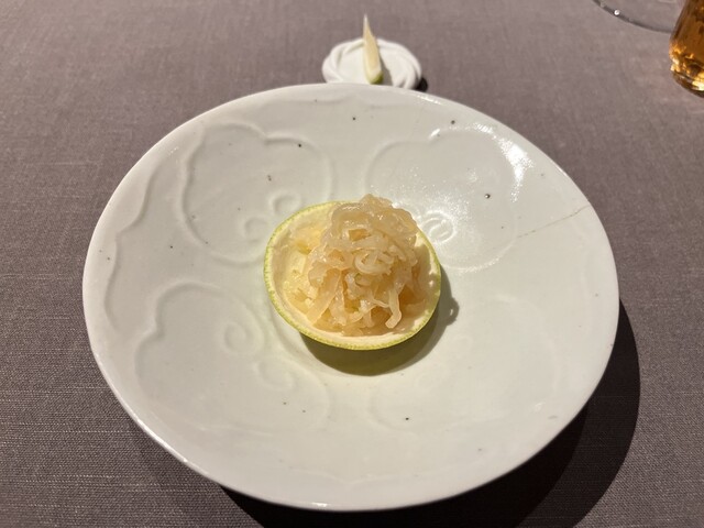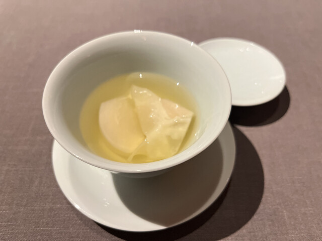 →続いては次のスープへの華麗な口直し♪海月は単なる中華海月ではなく、この時期だけの高知のベルガモットで爽やかに楽しませてくださいました(^^)