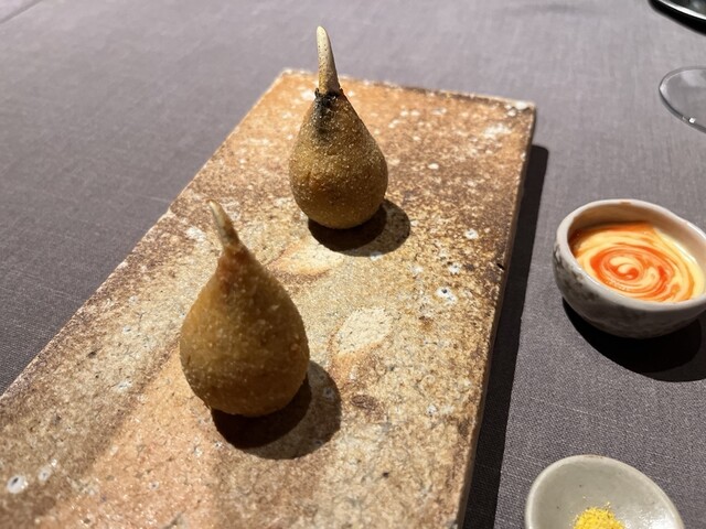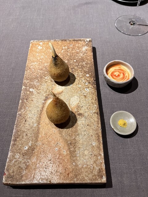 →まずは可愛らしいフィンガーフードから♫鳥の巣が海老芋だとは思えない丁寧な仕事に卵を模した里芋は美味♫流石です!