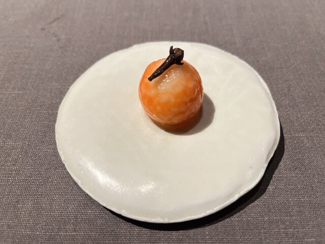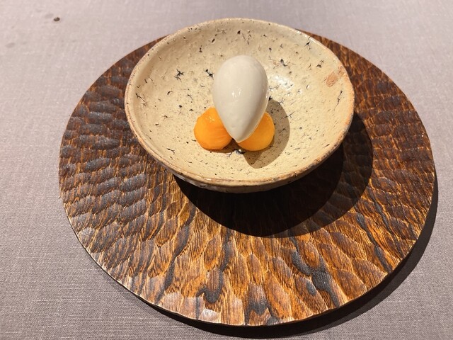 →ここからは甘味(^^)まずは胡麻アイスと柿のデザート!胡麻は喜界島の国産胡麻で味わいが美しいですし、柿も綺麗なオレンジ色♫中華感は柿ソースのタピオカで演出されていました。