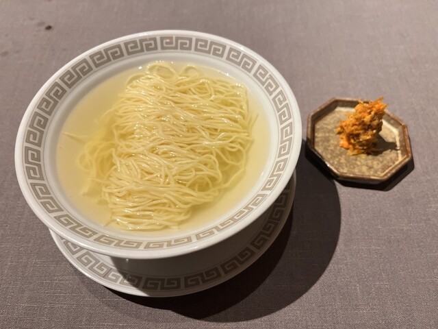 ◉鶏清湯麺 別添え上海蟹入りXO醬と共に