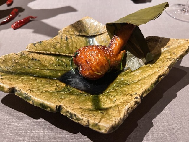 →続いては雉の雲呑スープですが、このスープのベースは蕪なので、本当清らか♫身体に染み入るような優しい味わいに癒されました(^^)そしてこのスープが最後のクライマックスへの序章でしたね♪