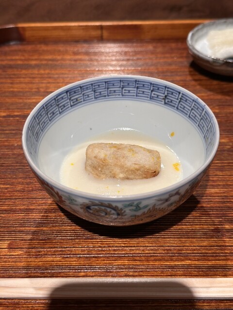 ◆海老芋の揚げ出し〜鶏出汁と豆乳餡