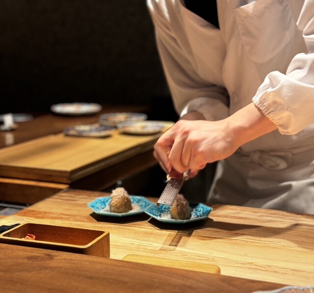 カウンターの半分は常連さん。常連を贔屓するのは当然ですが、一見客の私たちさえ、申し訳ないほどの低姿勢。お話しもとても分かりやすく、丁寧な対応頂きました。