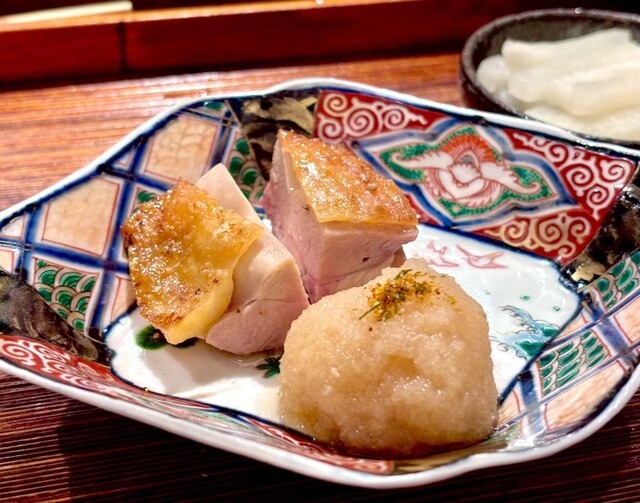 比内地鶏のモモ肉 おろしポン酢も旨い♫