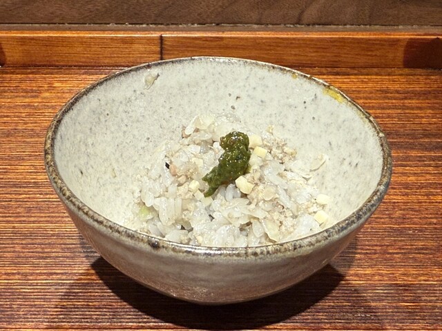 そぼろご飯(玉子がけ、かんずりねぎと新生姜)