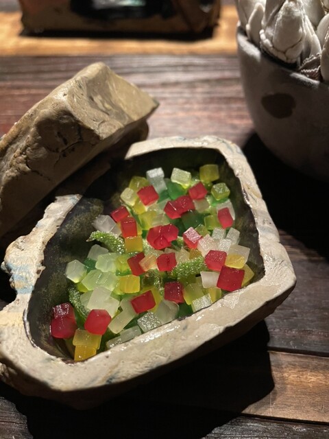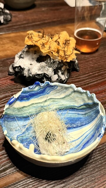 入った瞬間から、幻想的な空間に、目と耳が囚われ、スプーンを置く皿までがアートである事に気が付く。