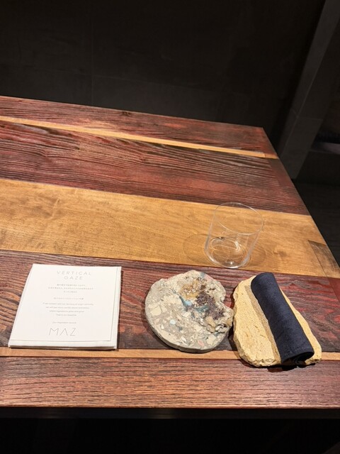 2023年に東京にオープンしてすぐ2024年ミシュランの星を獲得し、2025年も続けて獲得しているMAZ。完全予約制で、今回は17時に伺いました。コースは一つVERTICAL GAZEのみです。コース...