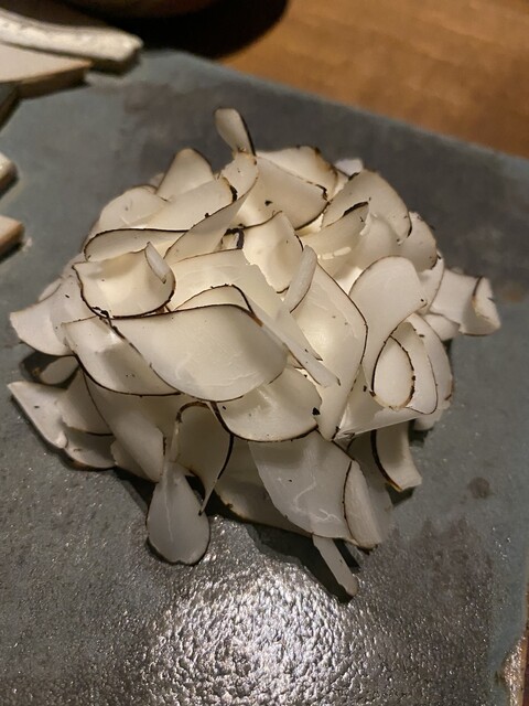 そして見た事もない、まるでビッシリとフジツボがひしめいているようなお皿の上にあるマテ貝。