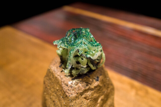 ちなみに個人的に一番美味しかったのはサラダに青い泡が乗っているような見た目のやつで、味わいを自分なりに例えるなら、揚げ玉のカリッとした食感が残っているタコヤキをホンノリと炭火焼きにしたみたいな感じでした(笑)
