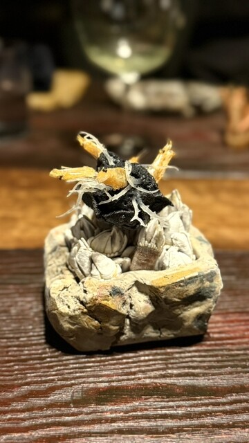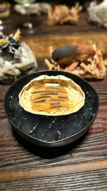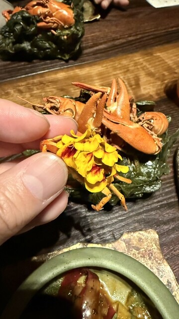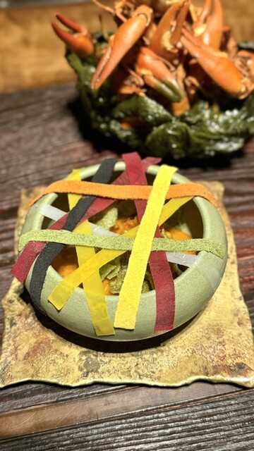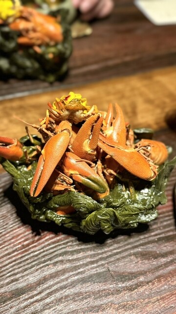 食べ物がどこにあるのかわからない器の先にちょこっとのったサワガニとか…(笑)
