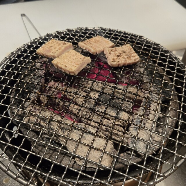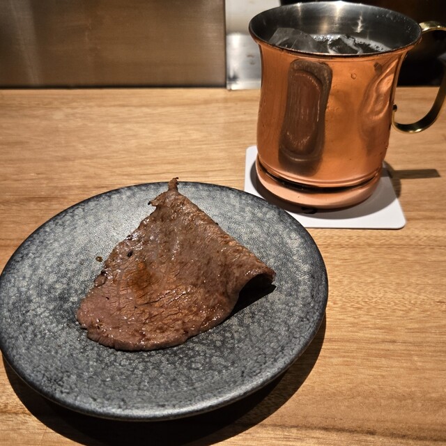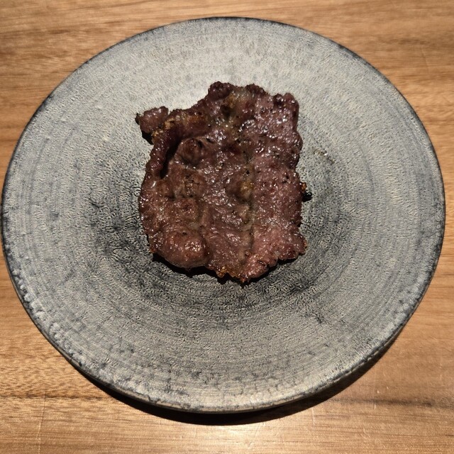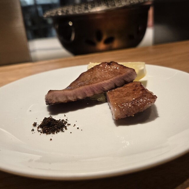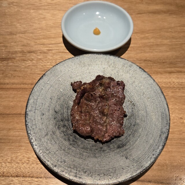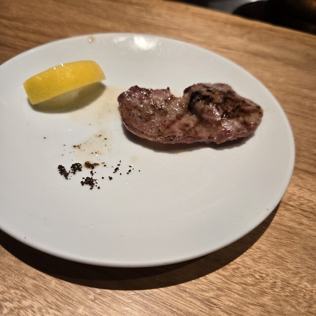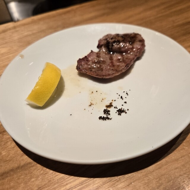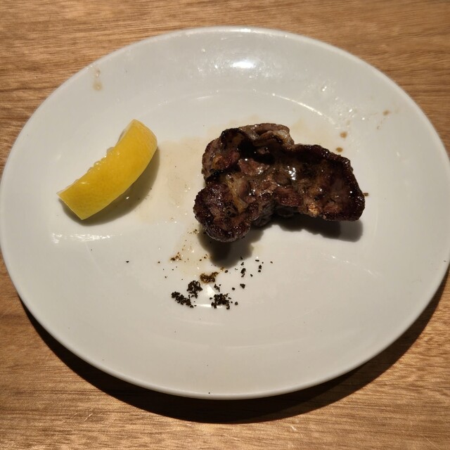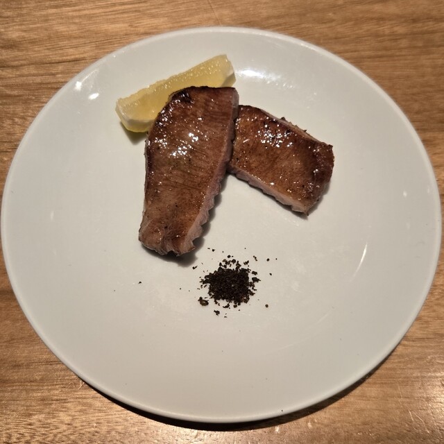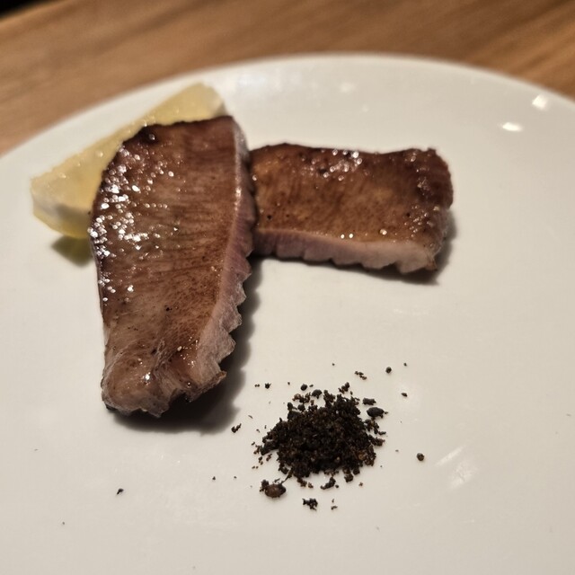 厚切りのタン、サクッとした歯切れで咀嚼する度に溢れる肉汁、黒七味をアクセントに堪能させていただきました、タンだけに( ̄ー ̄)ニヤリ