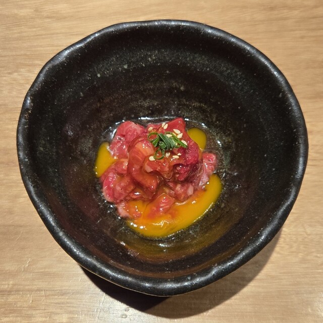 東京の焼肉店を牽引する、市ヶ谷の名店『炭火焼肉 なかはら』。常識にとらわれない自由な発想で焼肉の概念を覆してきた職人・中原氏が追求するのは、肉を口に入れたときの"食感"だ。吟味して仕入れた極上の和牛を、角度までも計算し尽くされた「手切り」で、至高のひと皿へと昇華する。噛みしめるほどに思わず頬が緩む悶絶級の美味を、その妙技を目と舌で体感できる渾身のおまかせコースで愉しみたい。』とのこと。