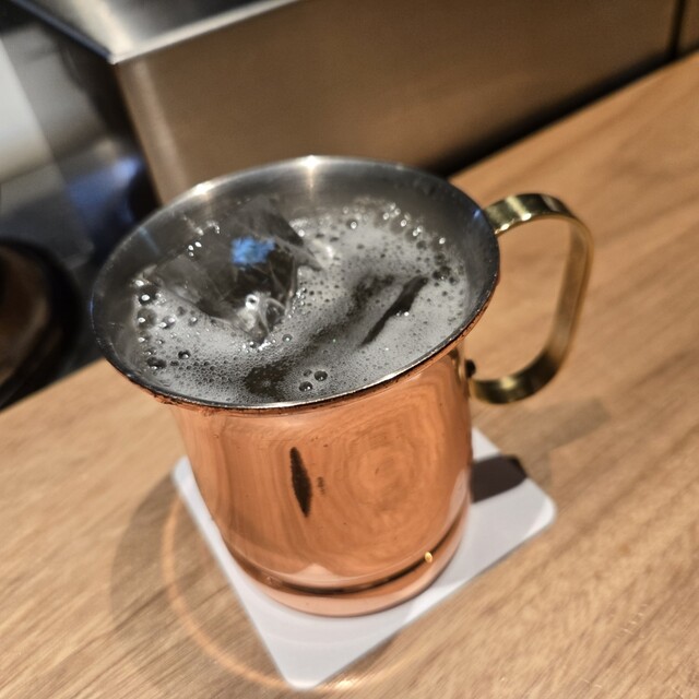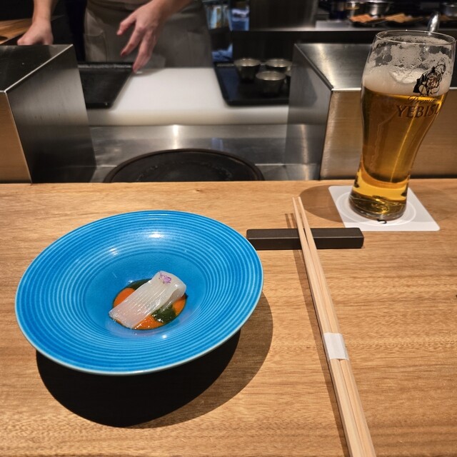 店主の中原健太郎氏やスタッフさん方に迎えていただき、賑わうスタイリッシュな店内、カウンター席にてお連れ様方と合流。