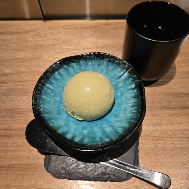 なめらかな舌ざわりのピスタチオアイス、1口濃厚な味わいを楽しんだ後、ラムをかけて一気に大人な味わいを別腹で楽しませていただきました(〃´∪`〃)ゞ