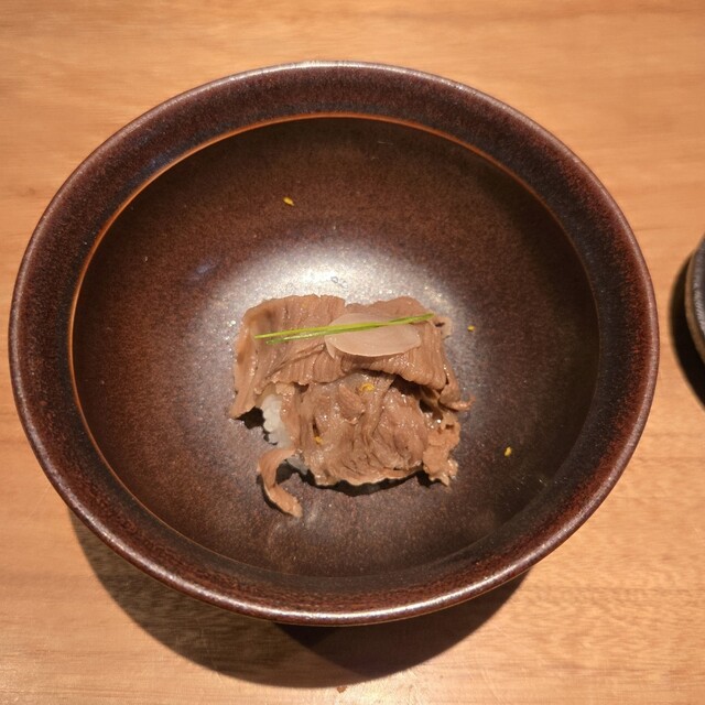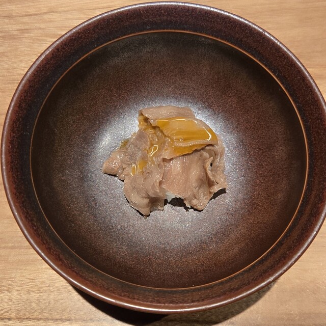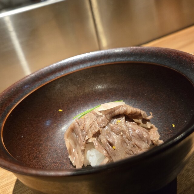 1口サイズの牛丼、生姜と芽葱をアクセントにしみしみの美味しさを楽しませていただきました(≧▽≦)