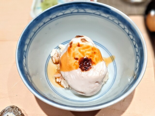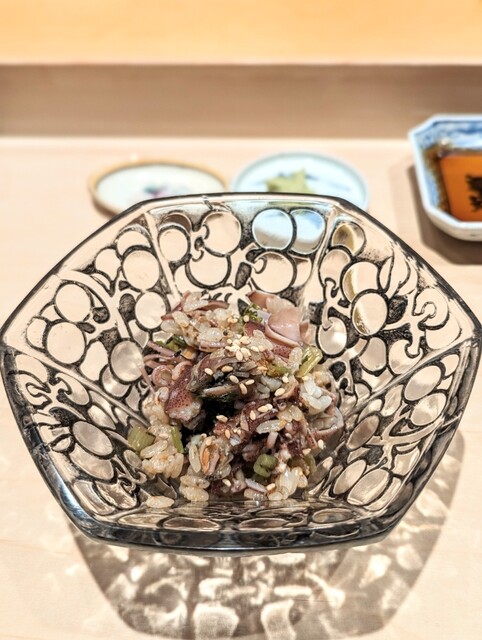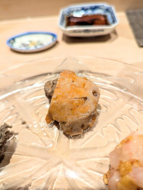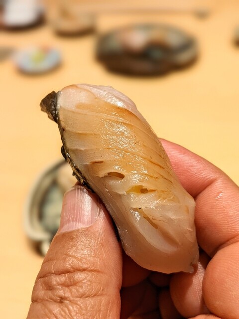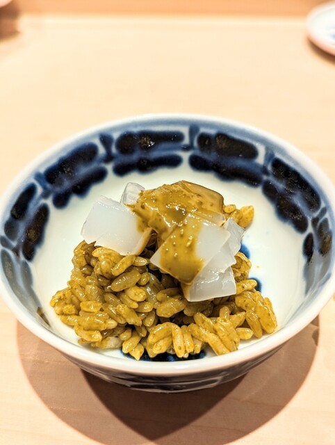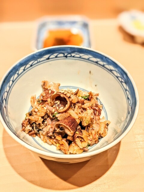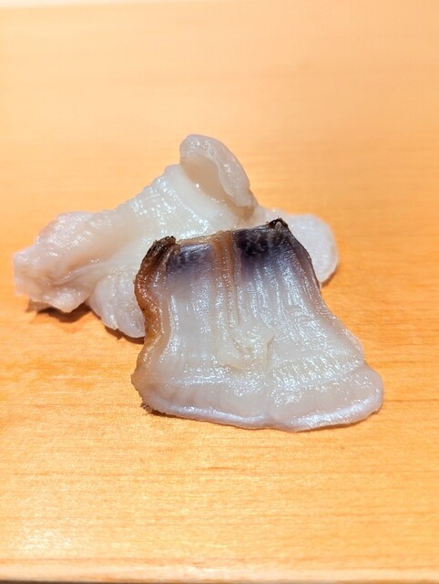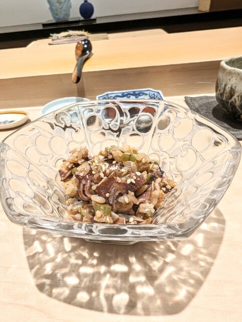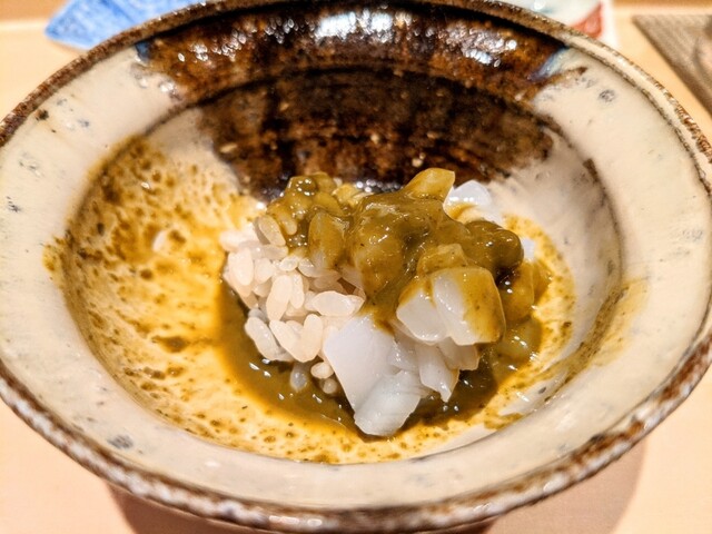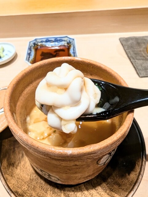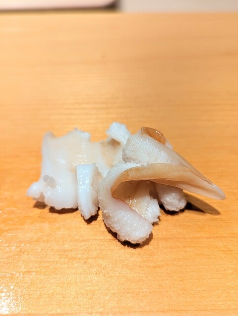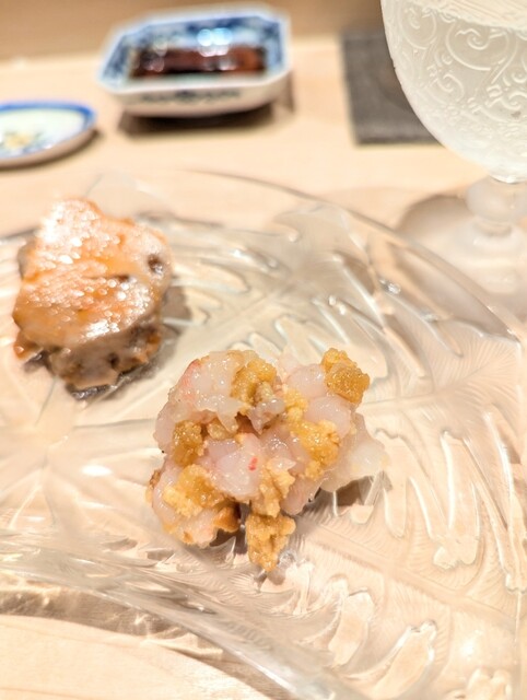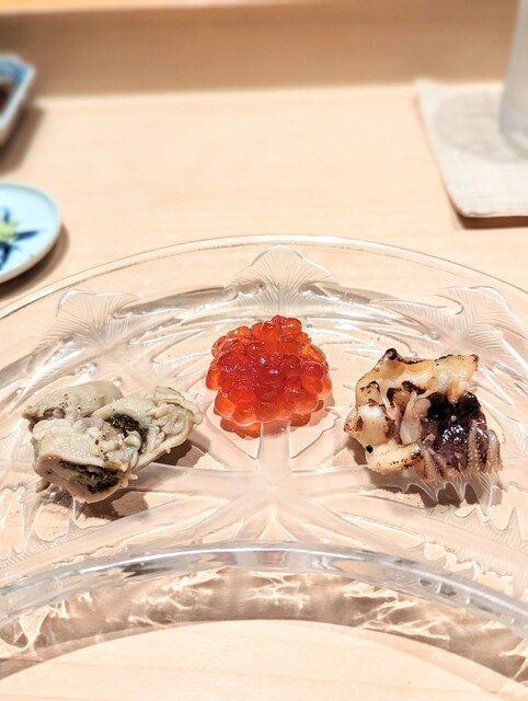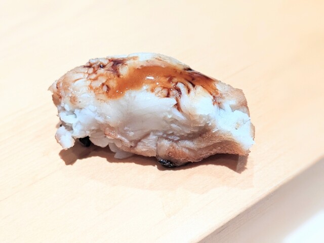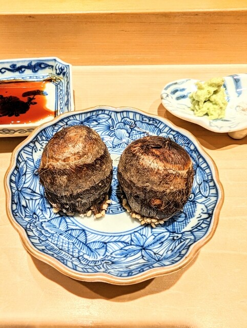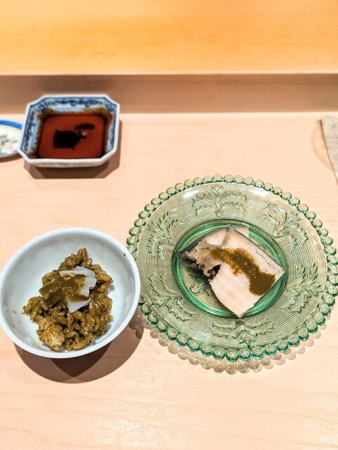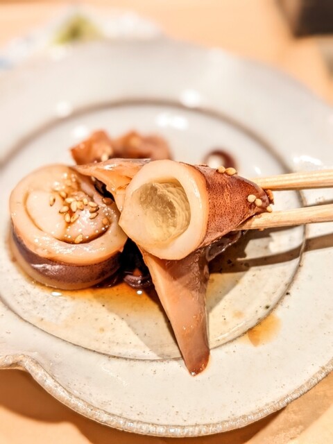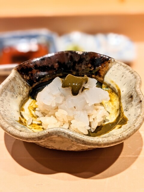 ●鮑の肝ソースにシャリ アオリイカの縁ペラ