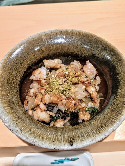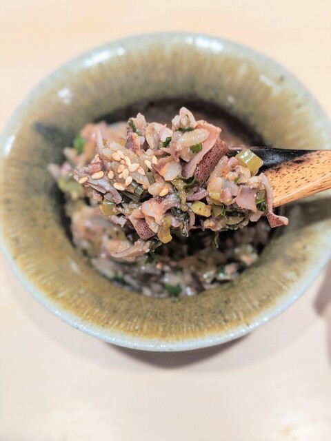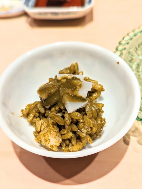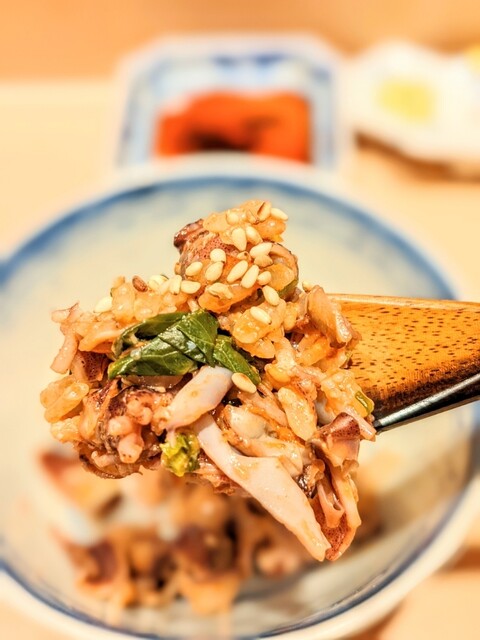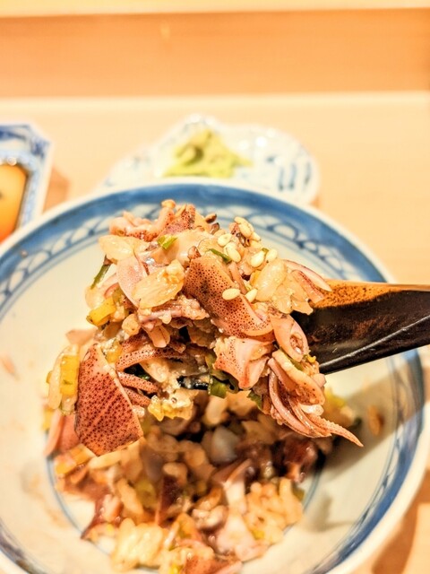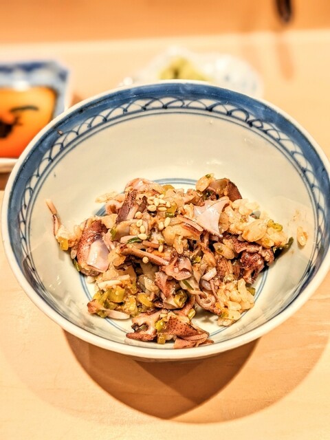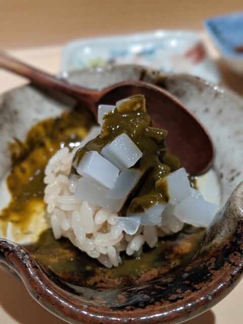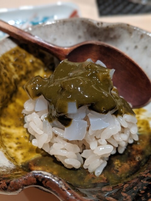 鮑の肝ソース飯にアオリイカの縁ペラが美味すぎ