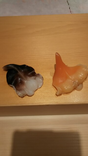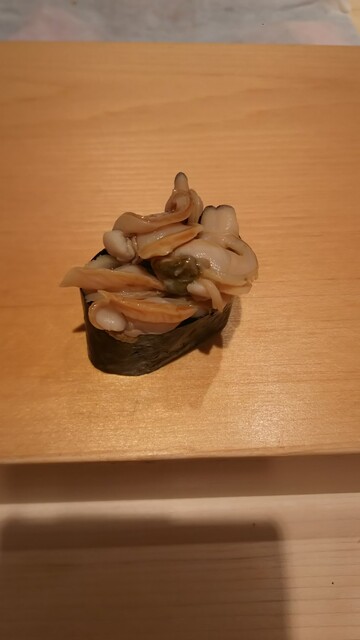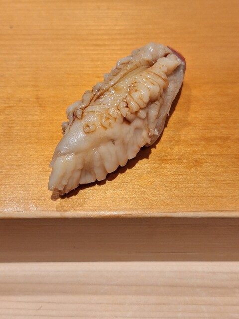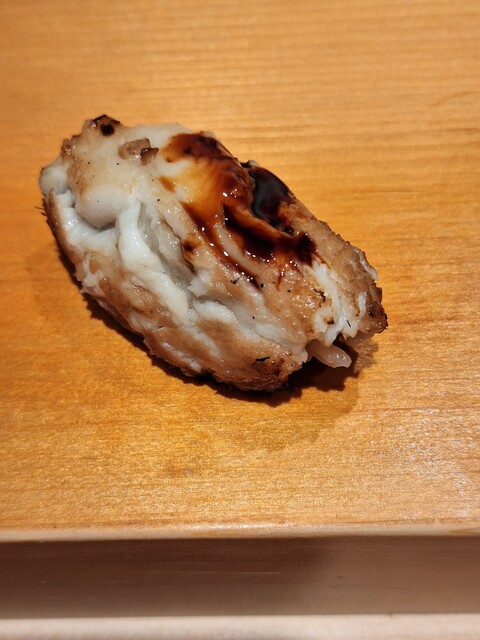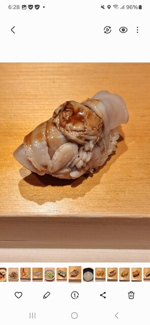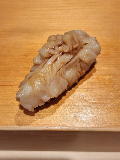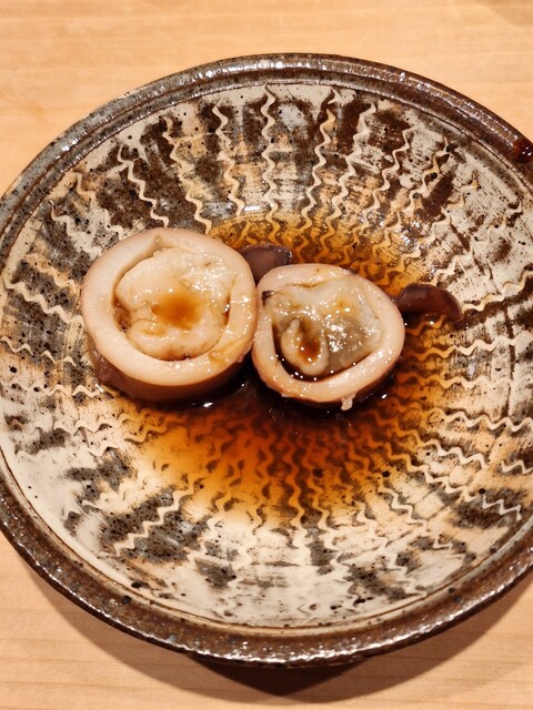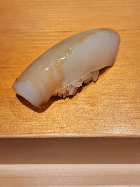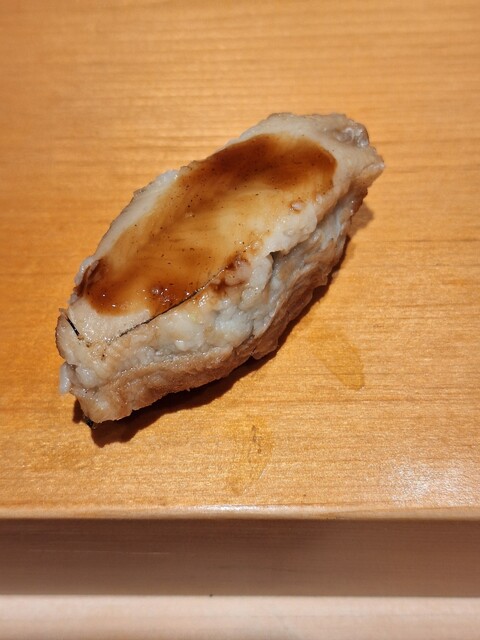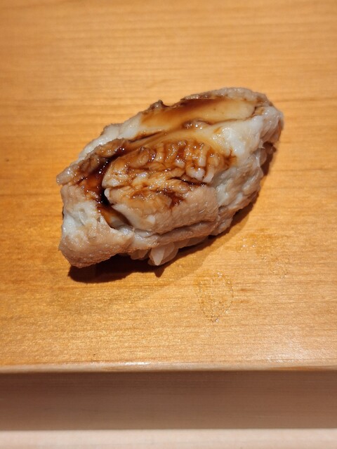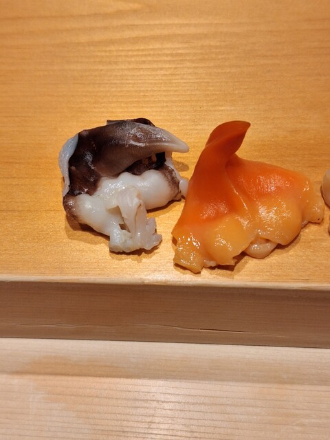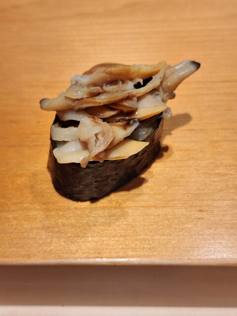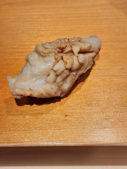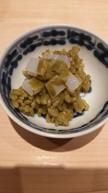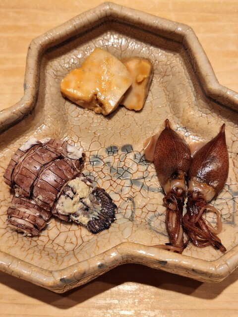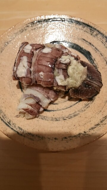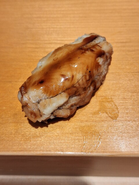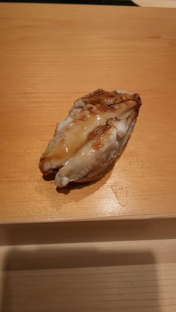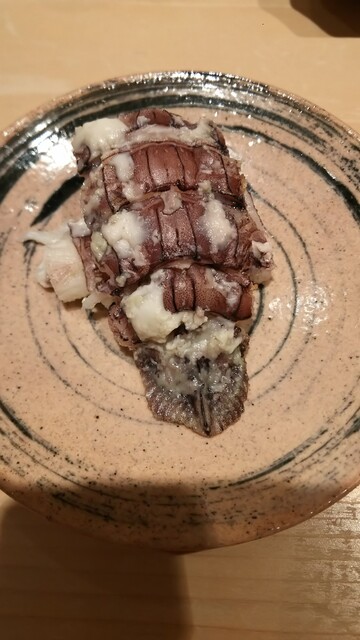 鮑(肝ソース、イカ、酢飯) かなり美味