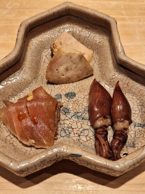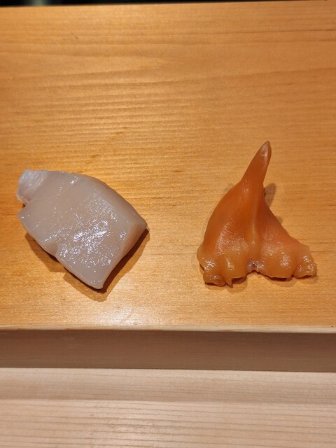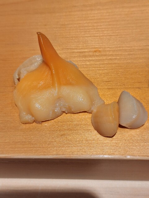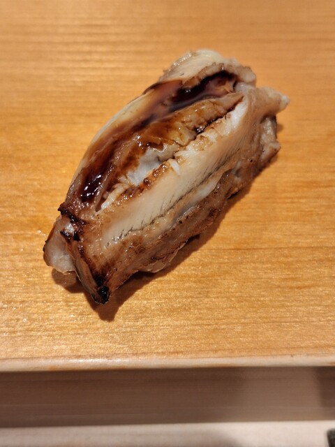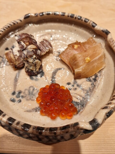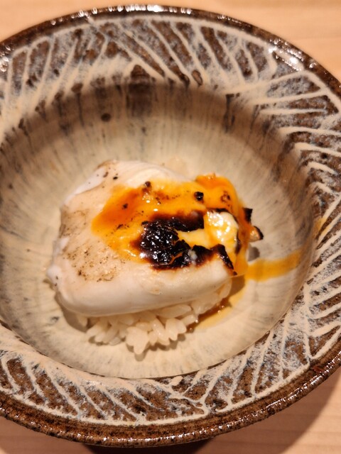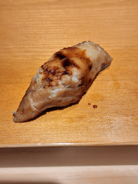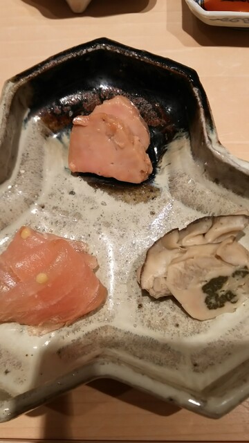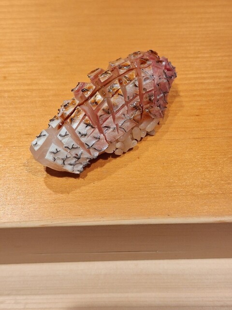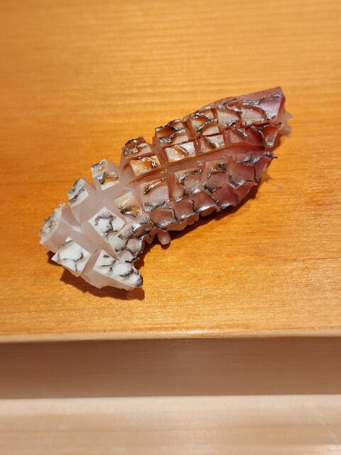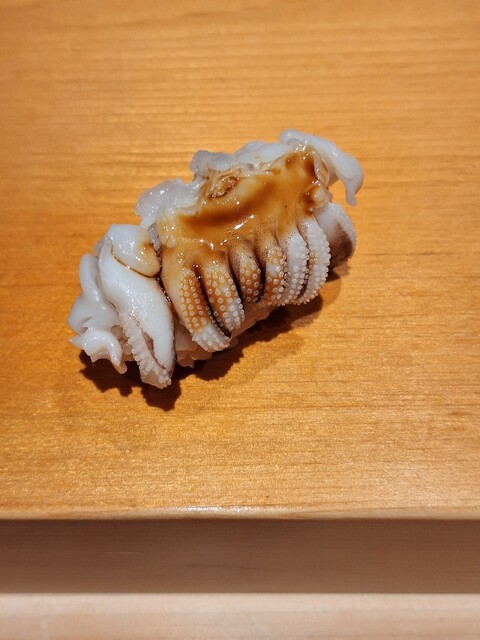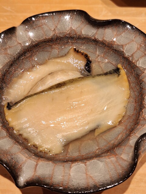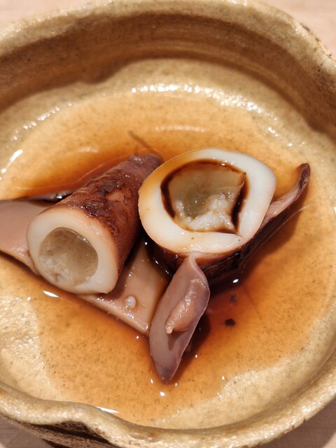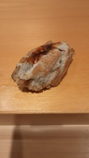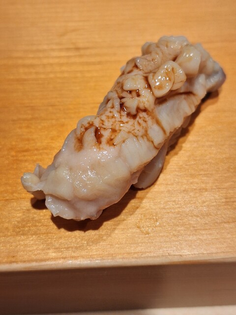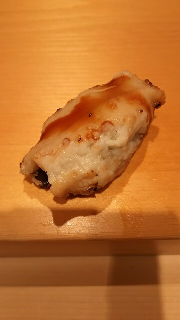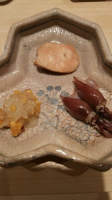 鮑(肝ソース、イカ、酢飯) かなり美味