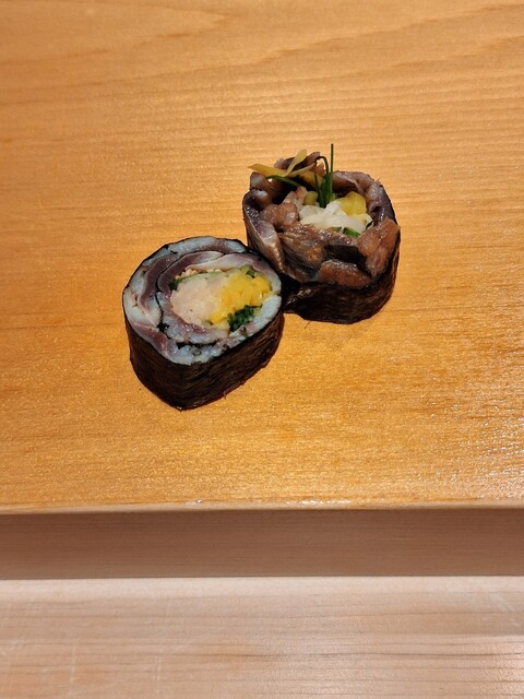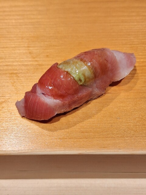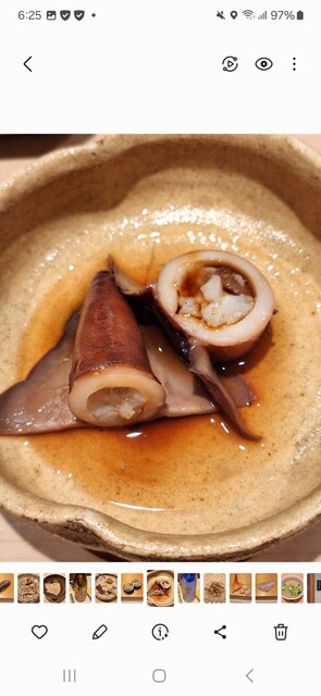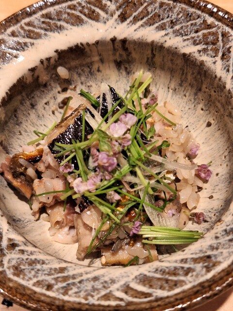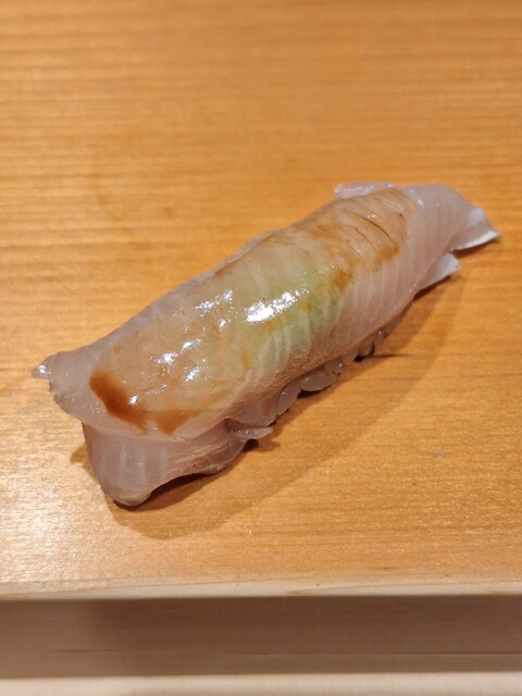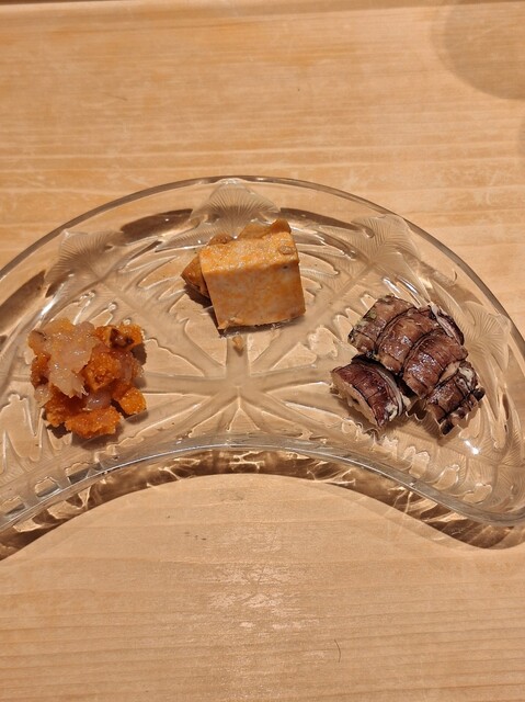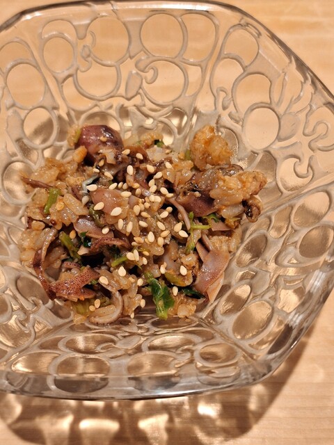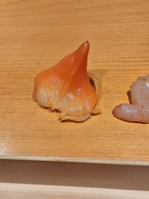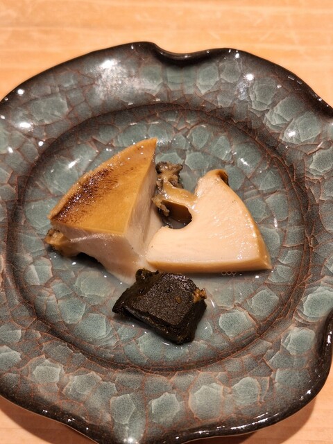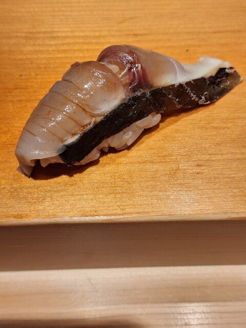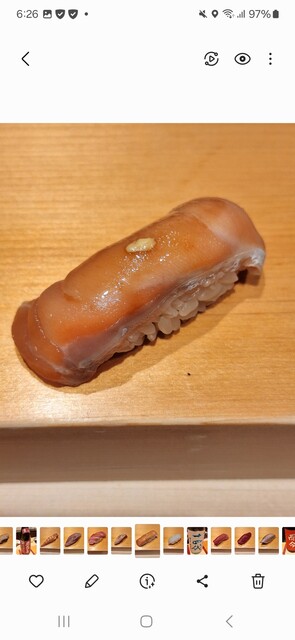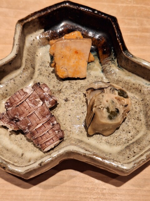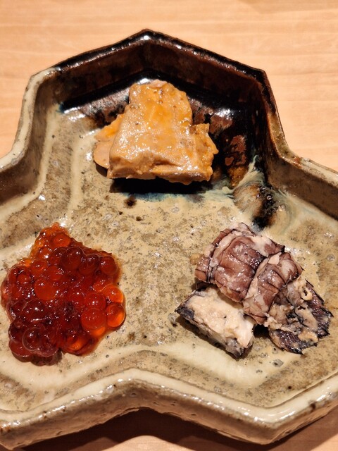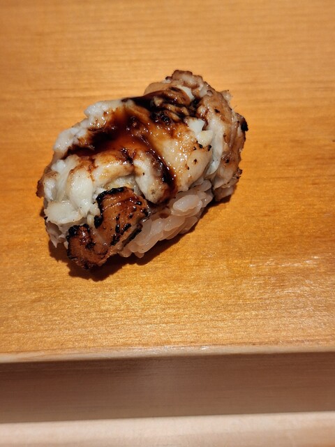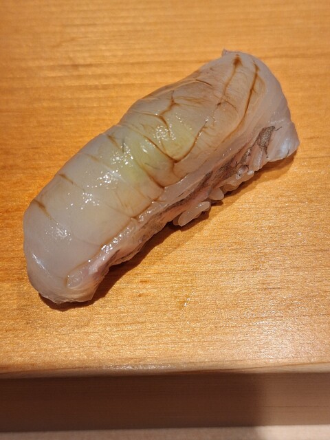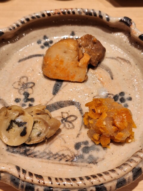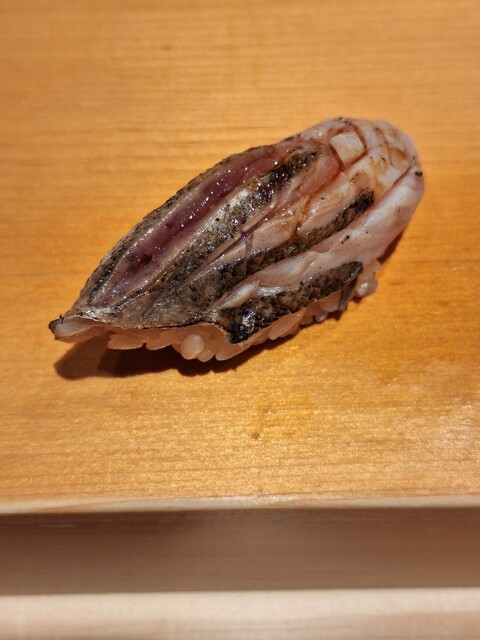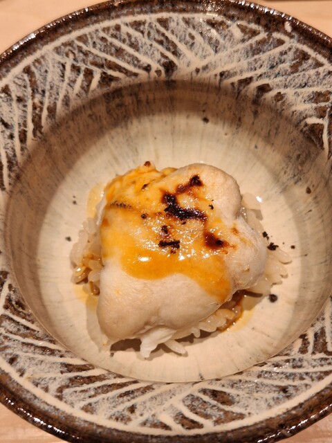 鮑(肝ソース、イカ、酢飯) かなり美味